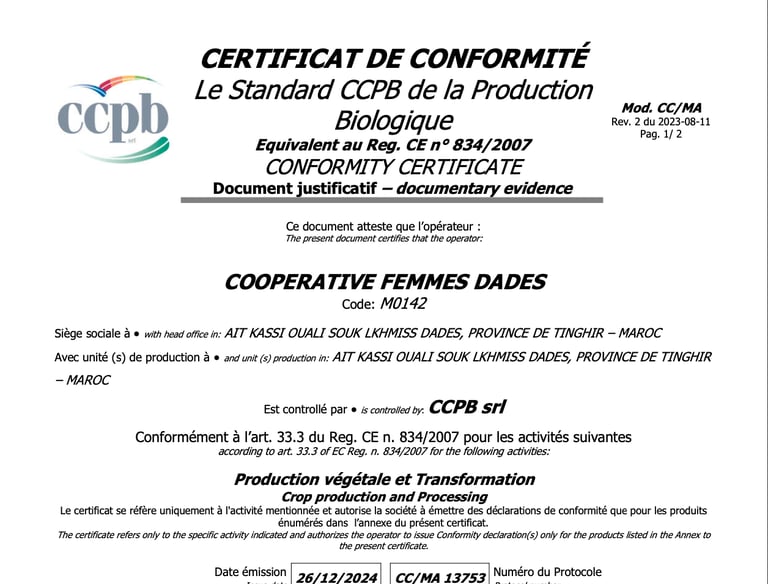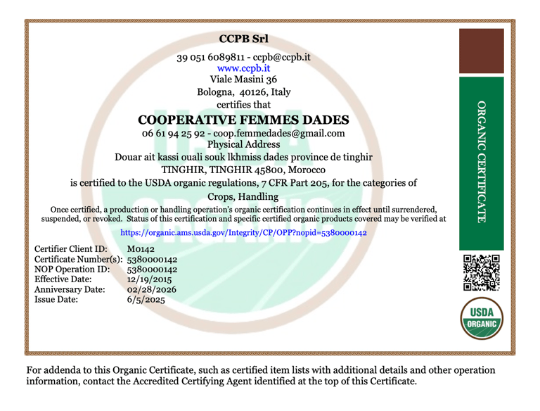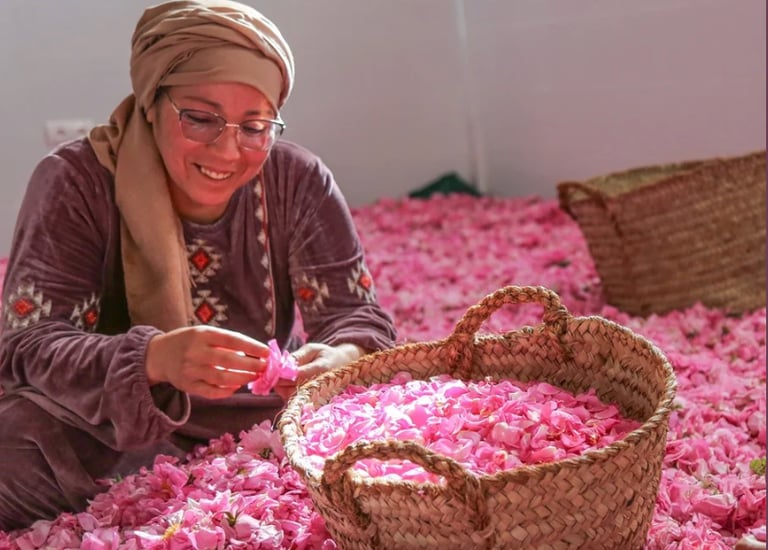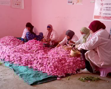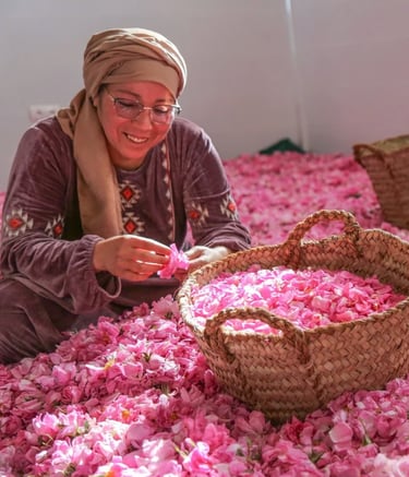 Born from the bold vision of women farmers—guardians of ancestral know-how, rooted in the land and nourished by local traditions—Femmes Dades Cooperative is one of the pioneering cooperatives in the Dades Valley, with a noble mission : to transform the valley’s roses and native plants and herbs into natural, authentic and organic creations. Every product is an ode to nature, patiently handcrafted with care, passion and respect for the earth.